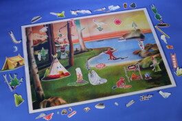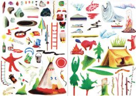 From Quintal édition's “Images Collantes” collection, “Camping Nord” is an A2 poster (folded in 4). The poster comes with two self-adhesive sheets to cut out and stick onto the poster to create an unusual camp. [FR] Issu de la collection “Images Collantes” chez Quintal édition, "Camping Nord" est un poster A2 (plié en 4). Le poster est accompagné de deux planches autocollantes à découper et à coller sur le poster pour imaginer un campement insolite.