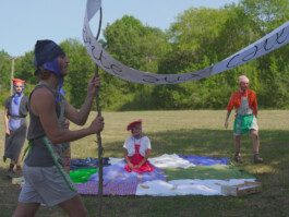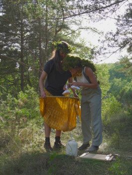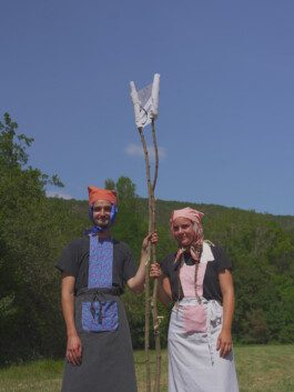The show was put on by a team of volunteers from the Dingdong collective. [FR] Un banquet itinérant dans la campagne aveyronnaise réalisé avec Aglaé Rochette. Les convives ont été invités, au cours d'une journée de randonnée, à découvrir de nombreuses représentations musicales et théâtrales tout en profitant d'une pause gastronomique. Chaque plat et amuse-bouche, 6 au total, a été servi par intermittencele long du parcours, accompagné d'une mise en scène. Le spectacle a été réalisé par une équipe de bénévoles du collectif Dingdong.