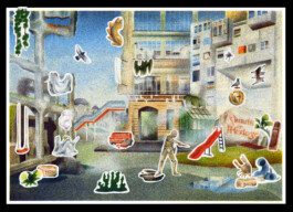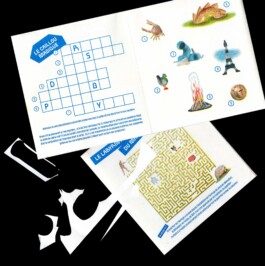 Le défenseur du temps” (The Defender of Time) game book as a mediation element for Cyprien Gaillard's exhibition at the Fondation Lafayette. Graphic design by Oscar Ginter. [FR] Carnet de jeux "Le défenseur du temps" servant d'élément de médiation pour l'exposition de Cyprien Gaillard à la fondation Lafayette. Graphisme Oscar Ginter.