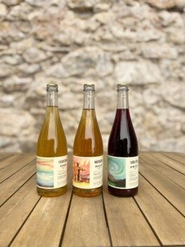 Creation of three new visuals for red and white natural wine labels for Maison Dréno. [FR] Réalisation de trois nouveaux visuels pour des étiquettes de vin nature, en rouge et en blanc, pour la Maison Dréno.