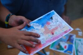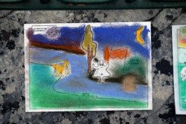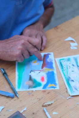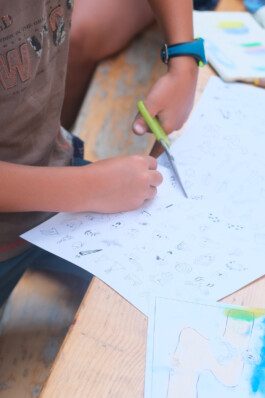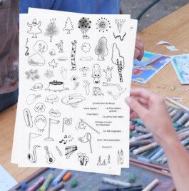 A workshop that smacked of the vacations! Each participant was given a pair of scissors, glue and a tube of color, and asked to complete a model postcard on the theme of comics and nature. Once they'd finished, each participant was free to post them or keep them in their souvenir boxes. The workshop was part of the “Nîmes s'illustre” festival. [FR] Un atelier qui sentait bon les vacances ! Chaque participant muni d'une paire de ciseaux, de colle et de tube de couleurs était invité à compléter un modèle de carte postale sur la thématique de la BD et de la nature. Une fois l'œuvre en poche chacun était libre de la poster ou de la garder dans sa boite souvenirs. Un atelier mené dans le cadre du festival "Nîmes s'illustre."